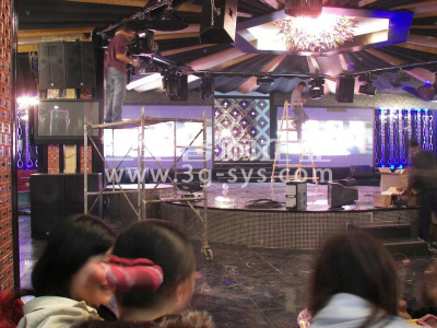 大包房音箱采用3G-AUDIO专业娱乐音响.主扩G320两只,补声G310两只。前级效果器为3G-AUDIO的09年新产品KIMX-330,新增功能:反馈抑制,三段面板可调均衡,多通道分量输出,低频自动衰减,采用新型DSP数字混响芯片,自动保存调试参数并加以锁定。后极功放采用MA900三通道大功率功放。