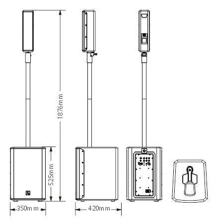 本系统是一款有源专业音箱,单12英寸低音单元、6只2英寸全频单元组成的高功率高声压的全木质音箱,使用CLASSD双功放驱动。考虑到声场定位,我们有可调节角度的金属支撑杆,无论你站着还是坐着都可以享受到最真实最动听的音乐。
